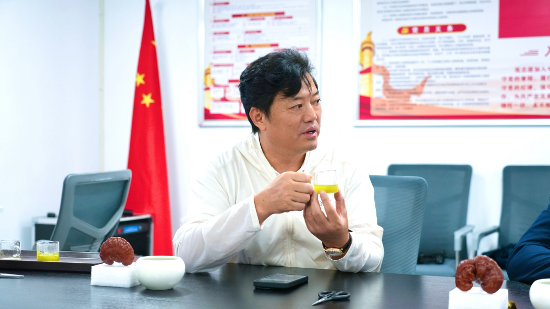 恰逢灵芝丰收佳期,“亲自收粉”成为此行首个互动体验,在“轻操作,不伤芝”的指导下,师生们小心翼翼将孢子粉收入密封瓶,体验了一把“秋收之喜”,更对有机种植理念下的道地品质连连点赞!